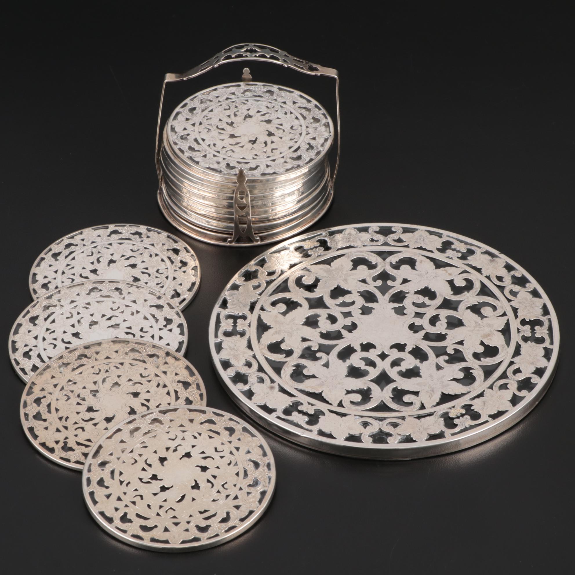 Webster Sterling Silver And Glass Openwork Coaster Set Early To