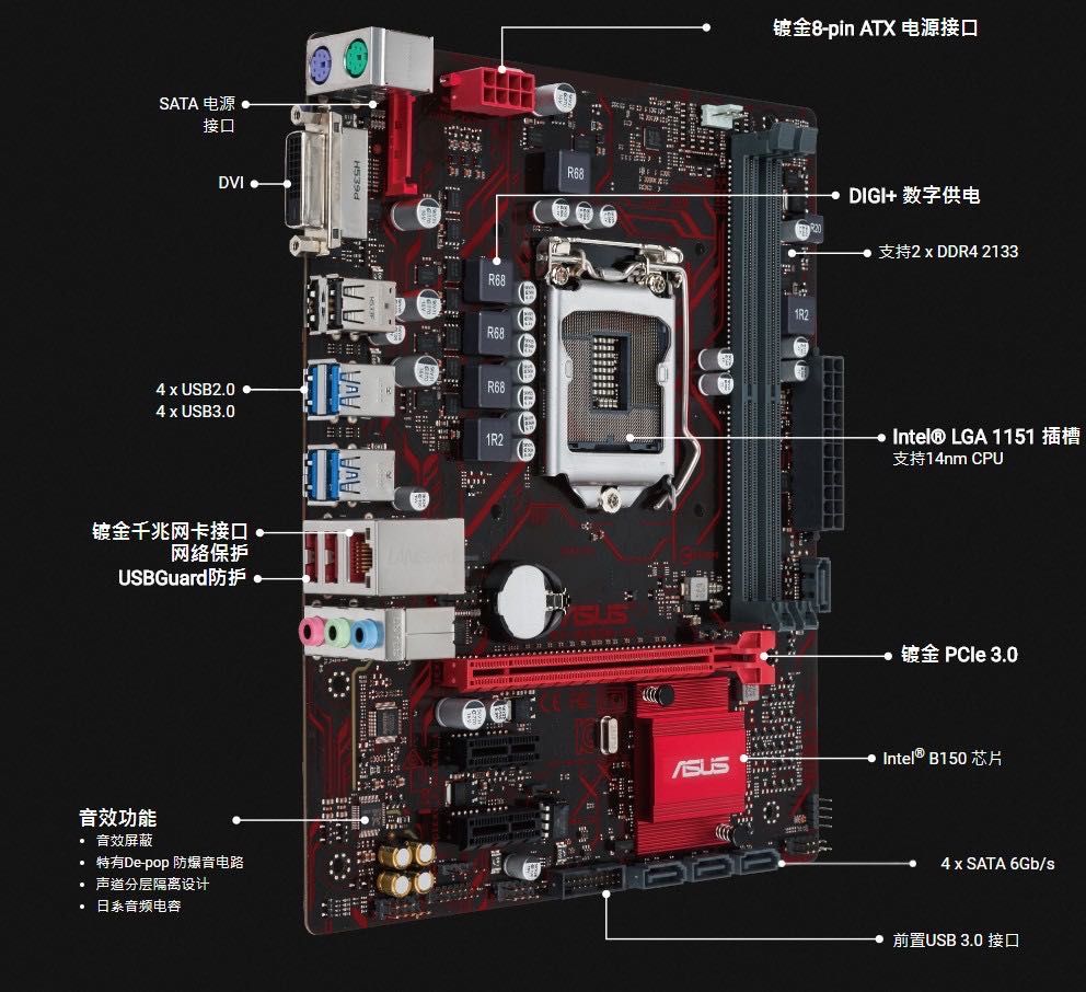 Asus Ex B150m V3 Motherboard Lga 1151 Ddr4 Usb2 0 Usb3 0 32gb Dvi